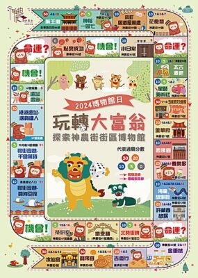 518國際博物館日,是由國際博物館協會所制定,希望透過博物館日號召各界關注博物館和文化產業,1992年開始每年設定博物館日的主題,今年的主題為「博物館致力於教育和研究」,因此台南市博物館節訂出「域教於樂,趣遊博物館」的主題。南臺科大的神農街街區博物館,目前已增加至十八項的特色活動與設施,因應今年的主題,特別開發「玩轉大富翁:探索神農街街區博物館」活動,將神農街博物館的範圍,精選出博物館裡蘊含十八項活動與設施的特色景點,再加上大富翁遊戲裡不可缺少的機會與命運,就成為大富翁遊戲的底盤。民眾先在博物館服務中心五條港文化會館聽取博物館的介紹,以及遊戲規則說明後,就可以執骰子開始遊戲。