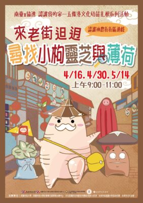 各區最新消息, 最新消息, 神農街區南臺x協進 認識我的家 五條港文化幼苗扎根教育活動|來老街𨑨迌-尋找小枸靈芝與薄荷街區遊戲 南臺科大usr計畫文化底蘊的在地創生與傳播-府城vs月津 攜手協進國小附設幼兒園師生一起「認識我的家」! 這次活動將要在神農街區體驗 街區遊戲,跟著小枸、靈芝、薄荷一起闖關解謎! 活動時間|共3場 2024年4月16日上午9:00-11:00 2024年4月30日上午9:00-11:00 2024年5月14日上午9:00-11:00 2023神農街幼兒文化快閃活動 南臺科大文化底蘊USR團隊與台南市文化協會攜手舉辦「七龍珠合體」主題燈展《2024/1/24》
