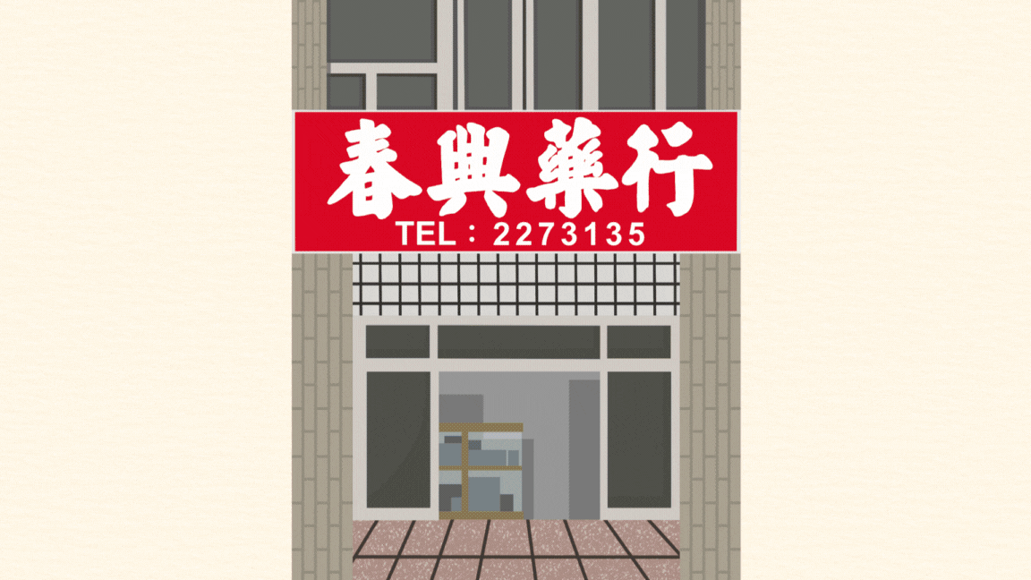 海安路的房子是二層樓的木板舊房子˙空間並不大,一樓當藥舖,二樓是住家,為了能有放藥材的空間,還特別架設閣樓。當時候創業一切艱難,明宗老闆跟三位親戚各借五萬元,能省則省一切從簡,就這麼開了藥店。在這麼小的空間要如何處理藥材呢?目前還存在民權路店鋪的木桌,可是當年切藥的檯子,需要切藥時就把木桌抬到路上,在藥店門前工作。另外的法寶就是折疊式的瓦斯爐台,需要蒸煮、炒時,就把爐子推到到門口,就在門前炮製中藥。每天忙碌地整理藥材、切藥、磨粉、做藥丸,冬天還會有代客浸藥酒等工作,明宗老闆刻苦耐勞的個性,也反映在經營春興藥行的策略,當時第二代的吳凱融老闆就開始參與其中。當年海安路水仙宮市場前除了春興還有斜對面的博生堂中藥房,附近也都有中藥行,相處的都很融洽,也能看出早期對於中藥材的需求量大。吳凱融老闆回憶兒時,中藥鋪間相互的扶持,他依稀記得有時候有民眾來抓藥,但是店裡剛好欠缺哪一種藥材,明宗老闆就會寫好藥材單,讓凱融老闆拿到對面博生堂,借藥材來包藥呢!