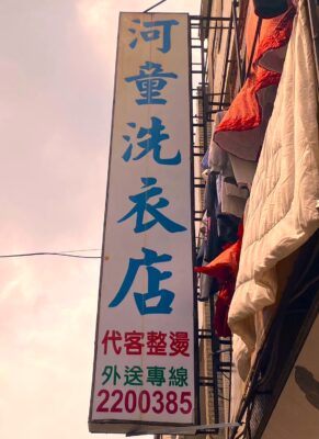 在民權路三段有家洗衣店,店名很可愛用的是日本神話中的傳說生物河童。用河童當店名主要是因為當時要開店,想不到取什麼店名才好,1993年日本的「河童三平」動畫上映,林金和老闆腦袋閃過自己的名字是「和」跟河童的「河」諧音,而且洗衣店要用到水,跟河童是水裡生物有異曲同工之妙,因而誕生了河童洗衣店。