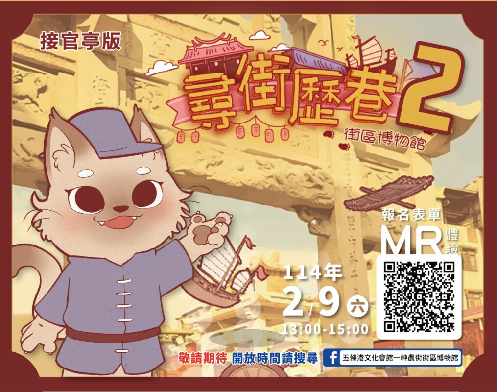 繼2024年推出的 #尋街歷巷 MR遊戲,今年再推出新款 #迎官接影!和小井兒一同穿越過去,看看清代官員在接官亭登陸臺灣的過程!一起探索接官亭、風神廟周邊的歷史場景,感受五條港的文化魅力吧!