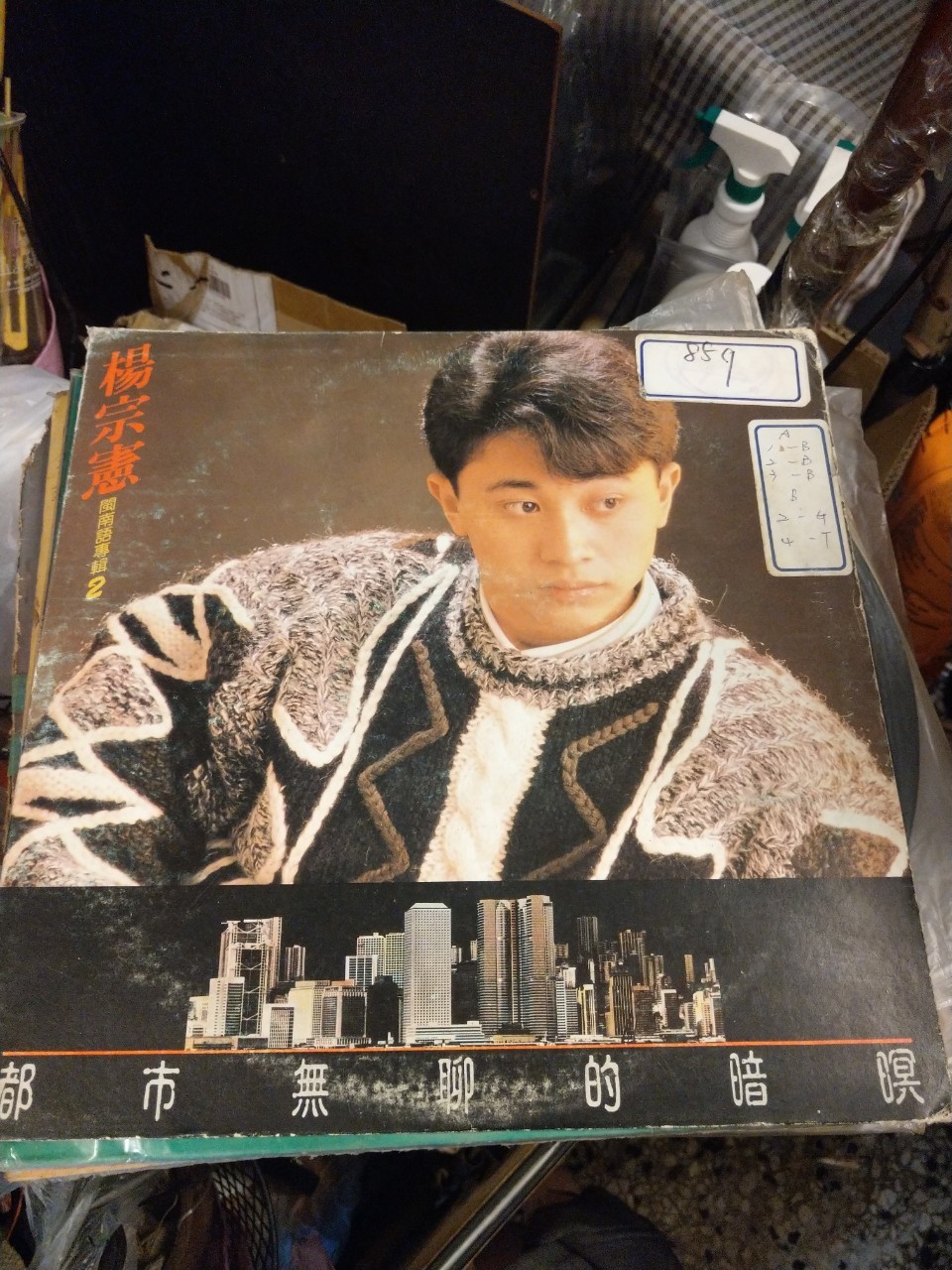 周董的黑膠唱片, 黑膠唱片-台語楊宗憲-都市無聊的暗暝 發行公司/地點:光美唱片唱片主題:楊宗憲-都市無聊的暗暝語文種類:台語 發行年代: 曲目: A面: 1.都市無聊的暗暝 2.愛情的陷阱 3.難入夢 4.人生大舞台 5.電話中的愛人 6.你是不是放禖記 B面: 1.趁少年 2.恨你不得已 3.苦嘆 4.退色的相片 5.哀戀記 6.甘願無的愛收藏者:周董二手貨-周慶賀老闆 蓬萊集廣播唱片第二集 胡美紅金唱片