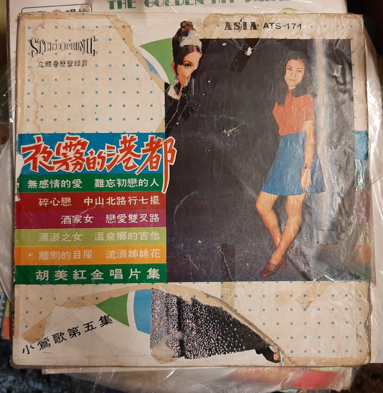 周董的黑膠唱片, 黑膠唱片-台語胡美紅金唱片 發行公司/地點:亞洲唱片唱片主題:胡美紅金唱片語文種類:台語 發行年代: 曲目: A面 1.夜霧的港都 2.無感情的愛 3.難忘初戀的人 4.戀愛雙叉路 5.中山北路行七擺 6.碎心戀 B面 1.酒家女 2.漂淚之女 3.温泉鄉的吉他 4.離別的目屎 5.流淚姊妹花收藏者:周董二手貨-周慶賀老闆 楊宗憲-都市無聊的暗暝 文夏 顏華歌唱集