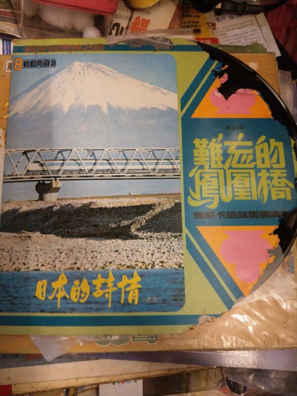 周董的黑膠唱片, 黑膠唱片-其他難忘的鳳凰橋 發行公司/地點: 唱片主題:難忘的鳳凰橋 語文種類:其他 發行年代: 曲目: A面 1.水色的手巾 2.青色山脈 3鴛鴦道中 4.懷念的播音員 5.浜千烏 6.難忘的鳳凰橋 B面 1.櫻花節 2.紅睡蓮 3.東京狂想曲 4.落葉時雨 5.紅與黑的勃魯斯 6.流浪到台北 收藏者:周董二手貨-周慶賀老闆 懷念的台湾名曲集 第四集 秋風夜雨•離別月台票