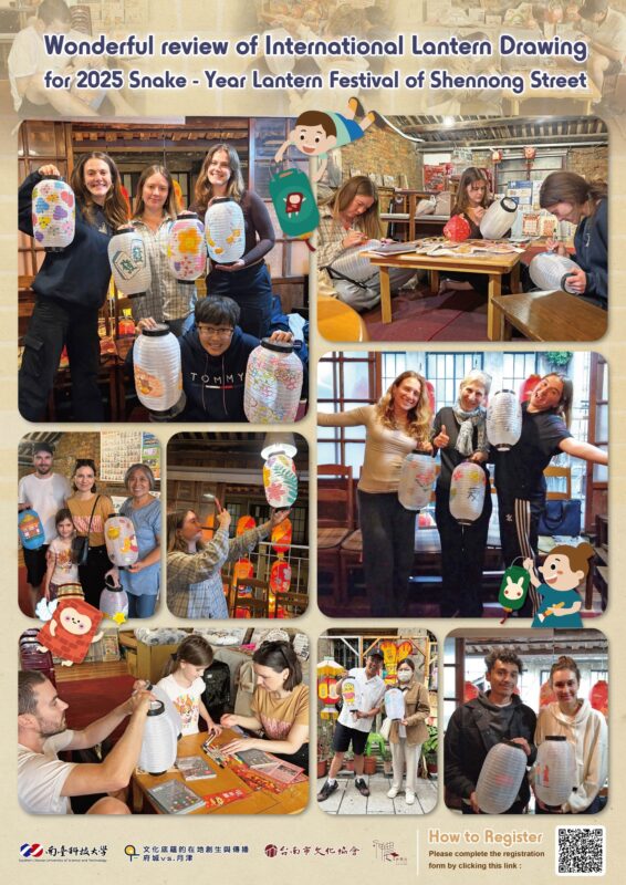 This will be a rare and unforgettable lantern-drawing experience. Instead of being just be a spectator, you will become an active participant in the creative process. In the heart of Tainan’s culture, you’ll be immersed in the distinctive atmosphere of the historic houses on Shennong Street. Additionally, your will personally draw your own lanterns and experience the warmth and joy of Tainan.