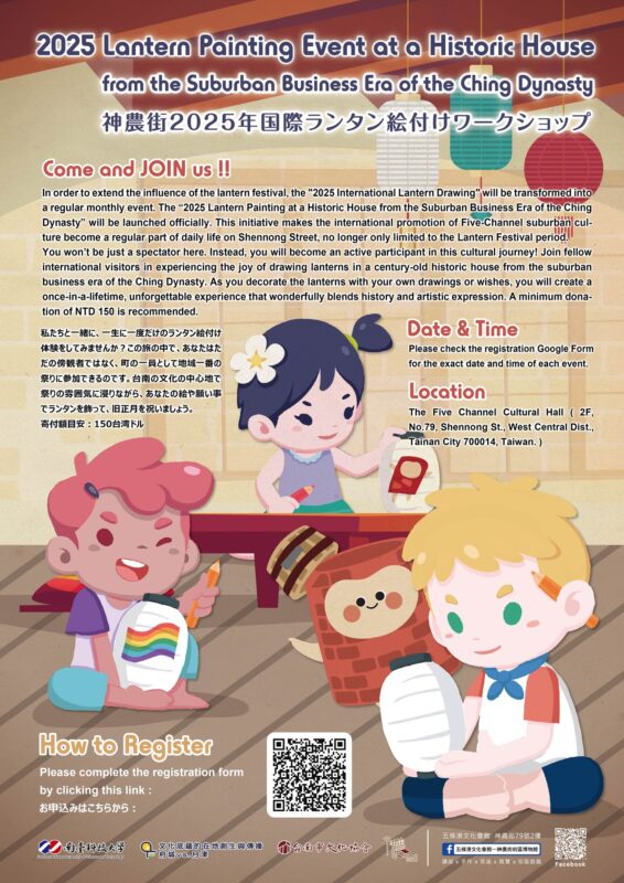 In order to extend the influence of the lantern festival, the “2025 International Lantern Drawing” will be transformed into a regular monthly event. The “2025 Lantern Painting at a Historic House from the Suburban Business Era of the Ching Dynasty” will be launched officially. This initiative makes the international promotion of Five-Channel suburban culture become a regular part of daily life on Shennong Street, no longer only limited to the Lantern Festival period.